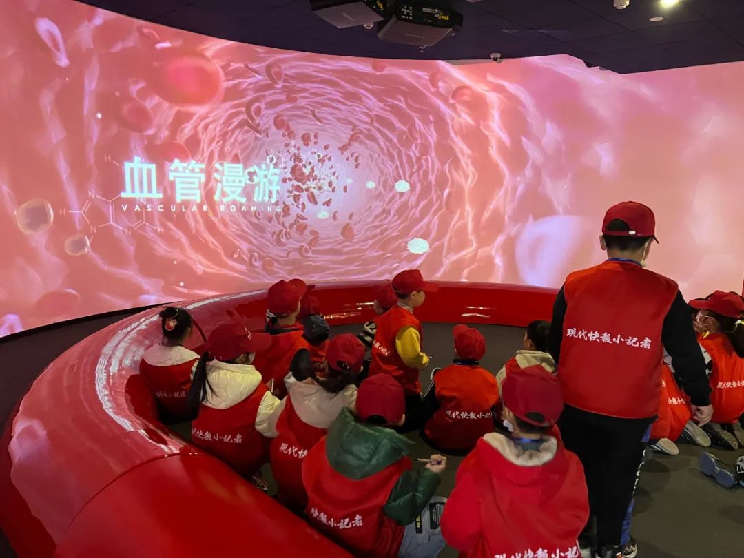 在血液科普教育基地,除了传统的图文、视频的展示,还能通过模拟操演、互动问答等手段,让小记者们在寓教于乐中学习相关知识。