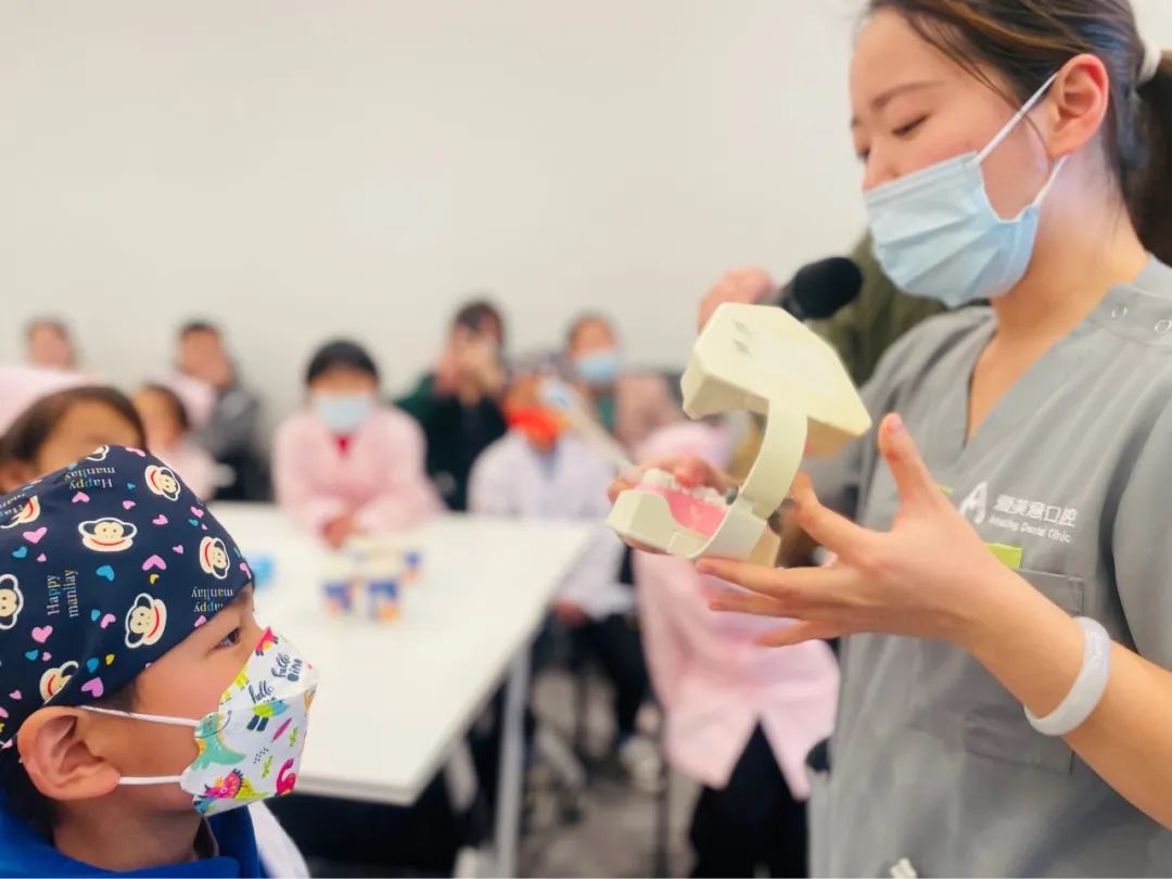 爱美意口腔医师向小记者介绍如何预防龋齿,如何正确刷牙,如何正确使用牙线……