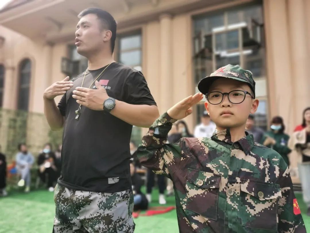 4月9日下午,骄阳似火,阵风猎猎。现代快报小记者们却身着整齐军装,精神抖擞,斗志昂扬,列队集结——在小荷美育提供的绿草地上,他们将学习队列训练、枪支拆卸、障碍挑战等各项军事训练内容。