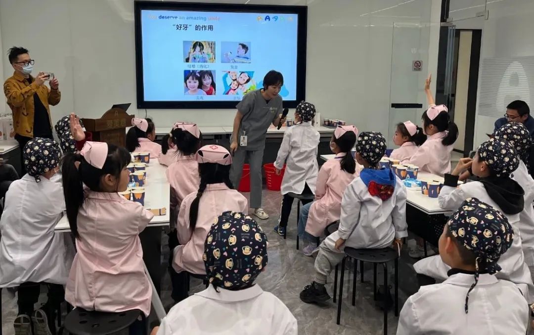 爱美意口腔的金文洁老师向小记者介绍如何成为一名合法且专业的牙医,为小记者们介绍如何预防龋齿,如何正确刷牙,如何正确使用牙线……小记者们认真听讲,积极回答问题,在寓教于乐中直观了解牙齿结构特征,增长口腔健康知识。