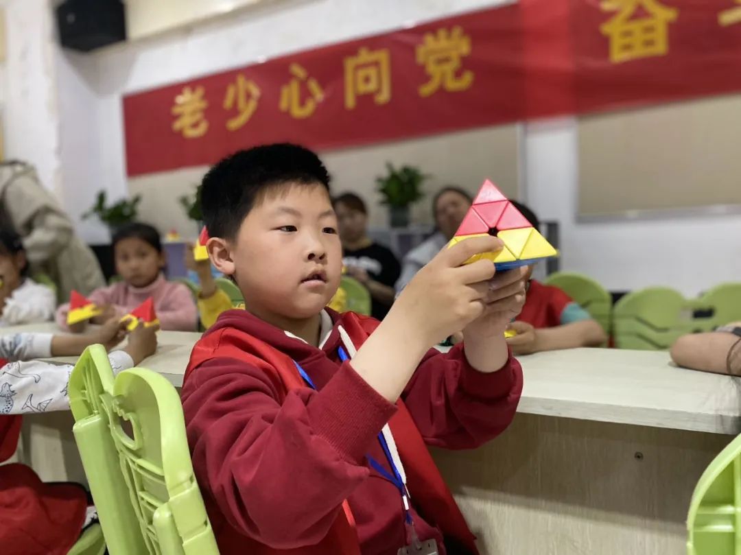 老师们将金字塔魔方分发到每位小记者手中,讲解完基础还原魔方的方法,就到小记者动手体验的时间啦。“老师老师,看我做的对吗?”小记者们纷纷邀请老师指导。