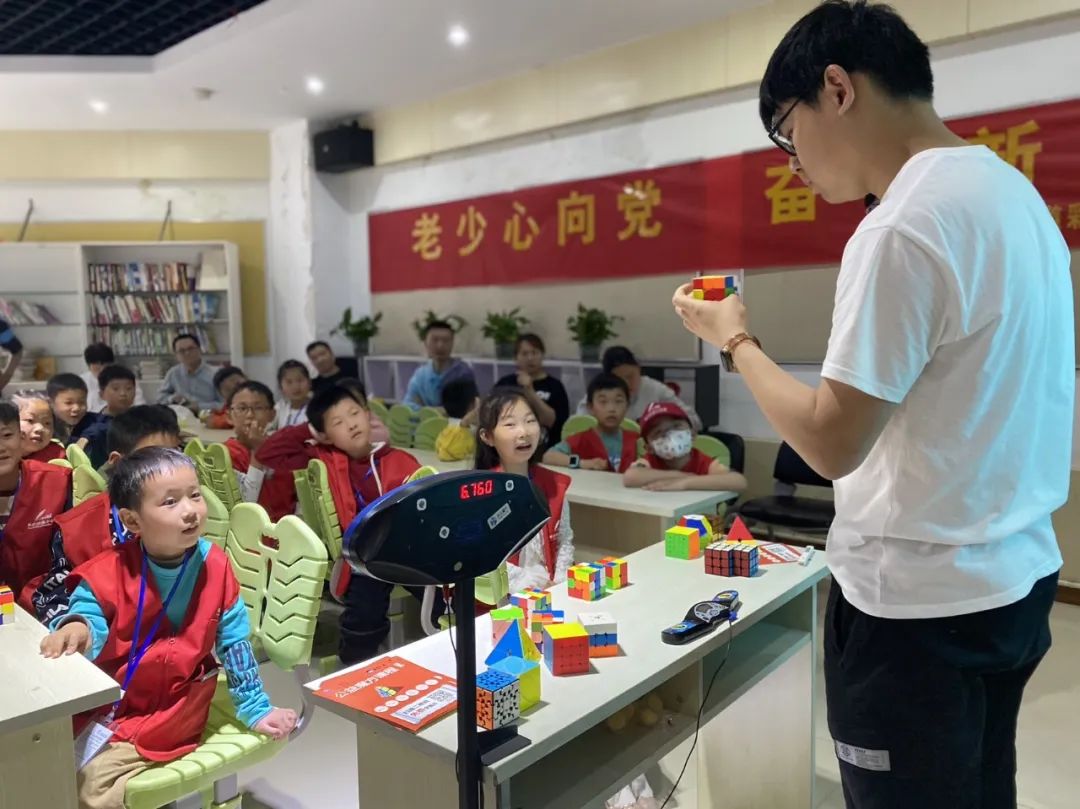 魔方是一种能在休闲放松中开发智力,提高空间思维能力的益智活动。常州魔方高手为小记者现场演示专业的魔方还原技巧和竞速玩法,全场小记者的目光紧紧跟着魔方不停跃动。