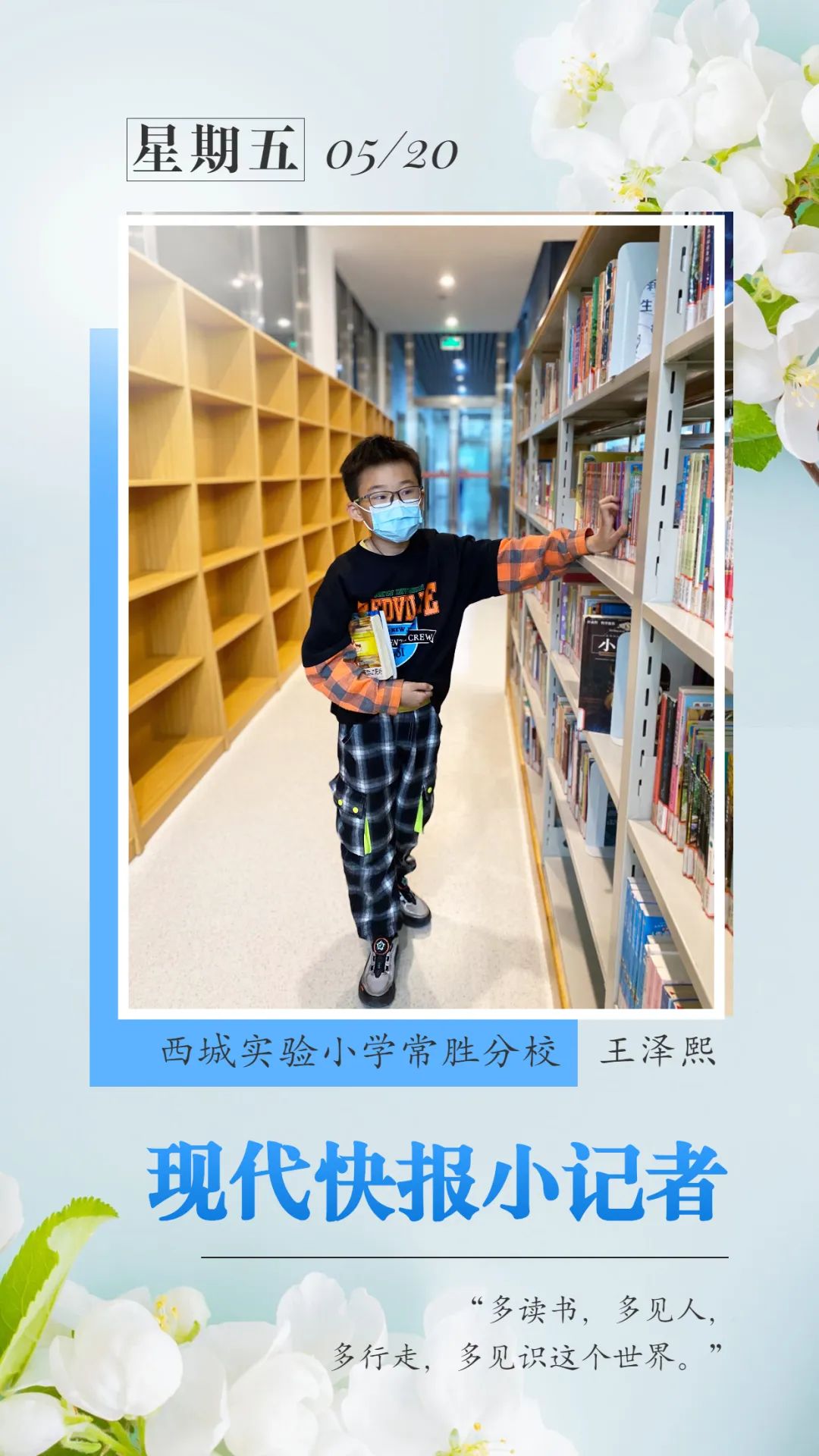 今天的小主人公是来自西城实验小学常胜分校的王泽熙小记者。“多读书,多见人,多行走,多见识这个世界”是小记者最喜欢的一句话。
