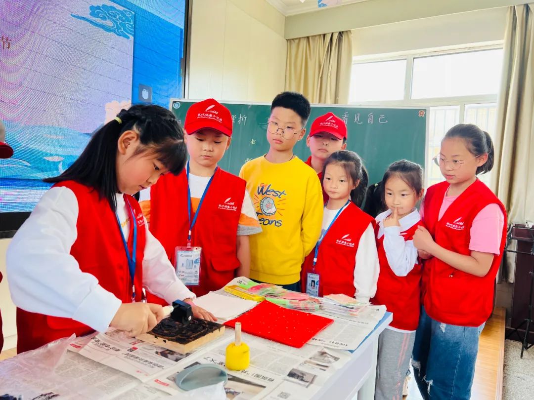小记者按照印刷的五个步骤逐一进行:上墨、铺纸、拓印、检查、揭起,一份份精美印刷作品的呈现,让停留在课本上的非遗瞬间“活”了起来。大家在亲手实践的过程中触摸历史,近距离地感受到了传统文化的魅力。