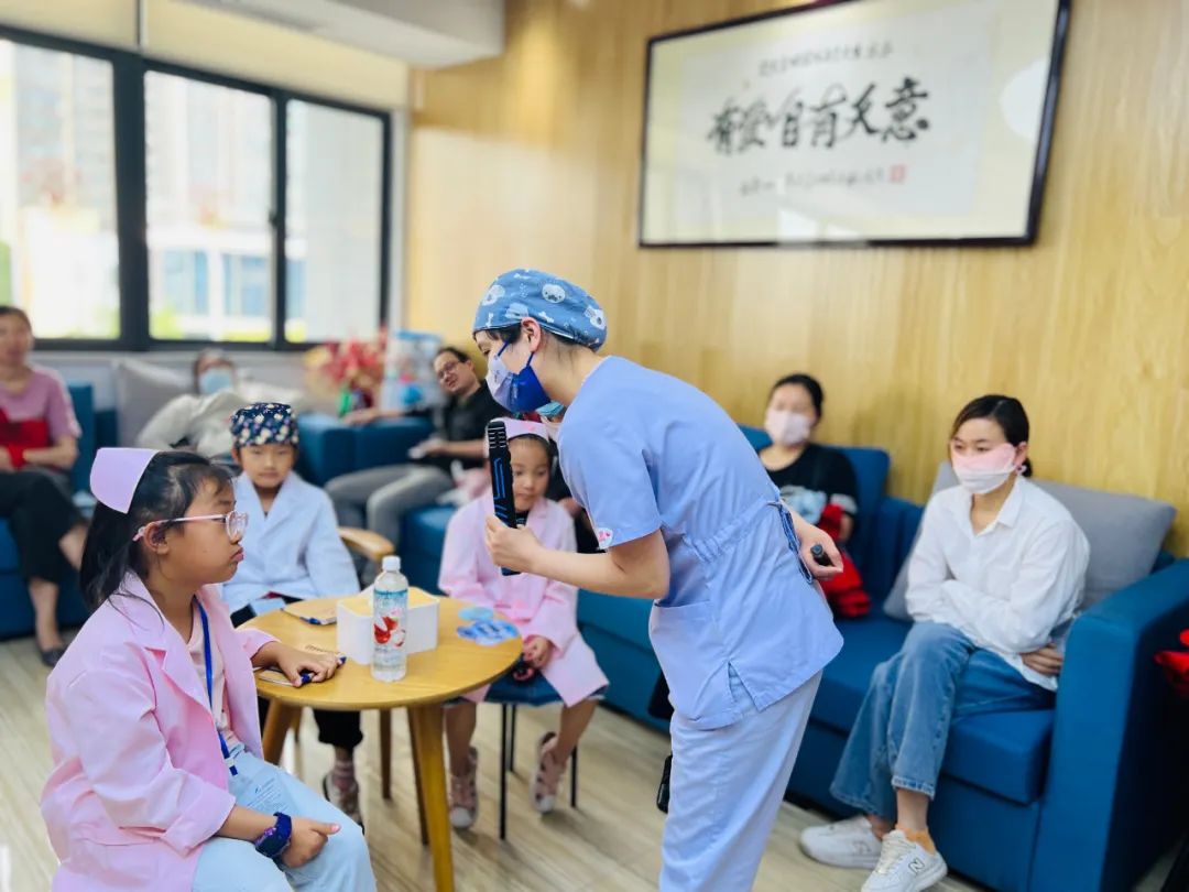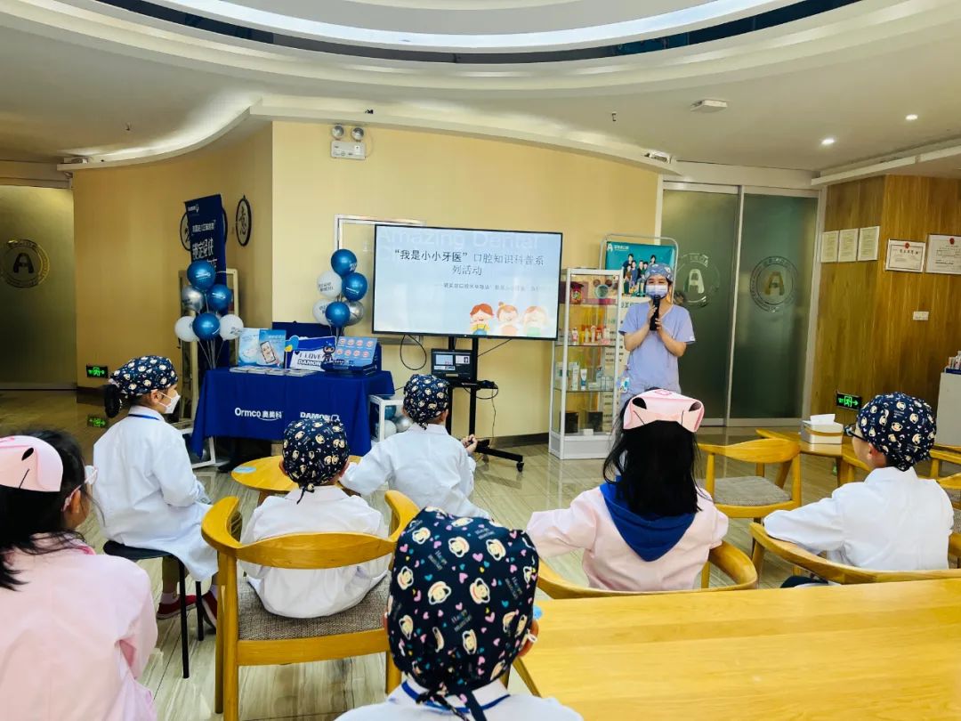 爱美意口腔的王老师向小记者介绍如何成为一名专业的牙医,为小记者们介绍如何预防龋齿,如何正确刷牙,如何正确使用牙线……