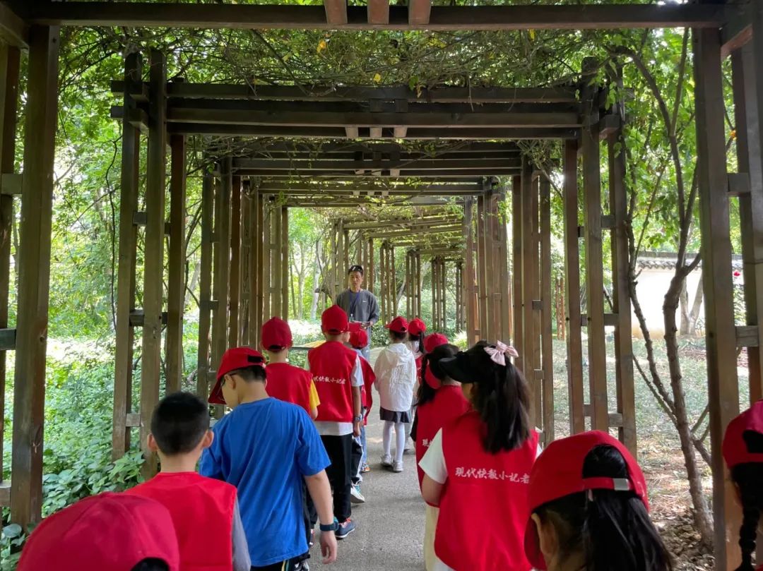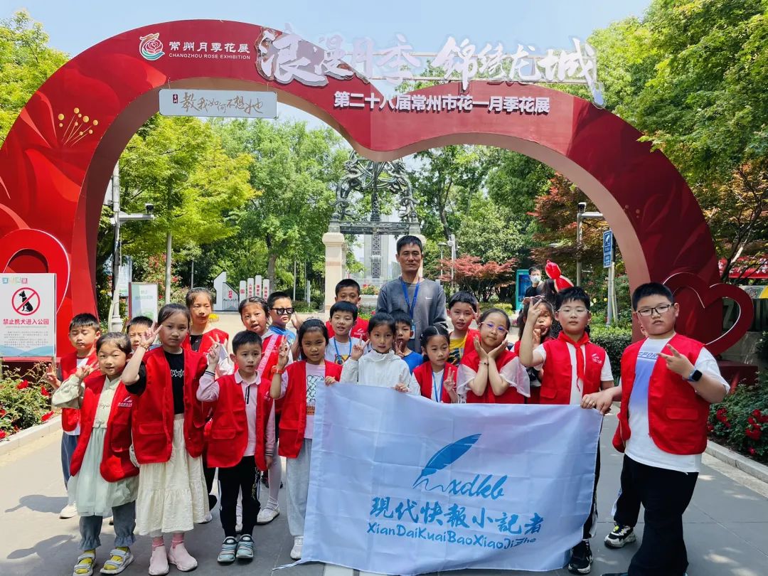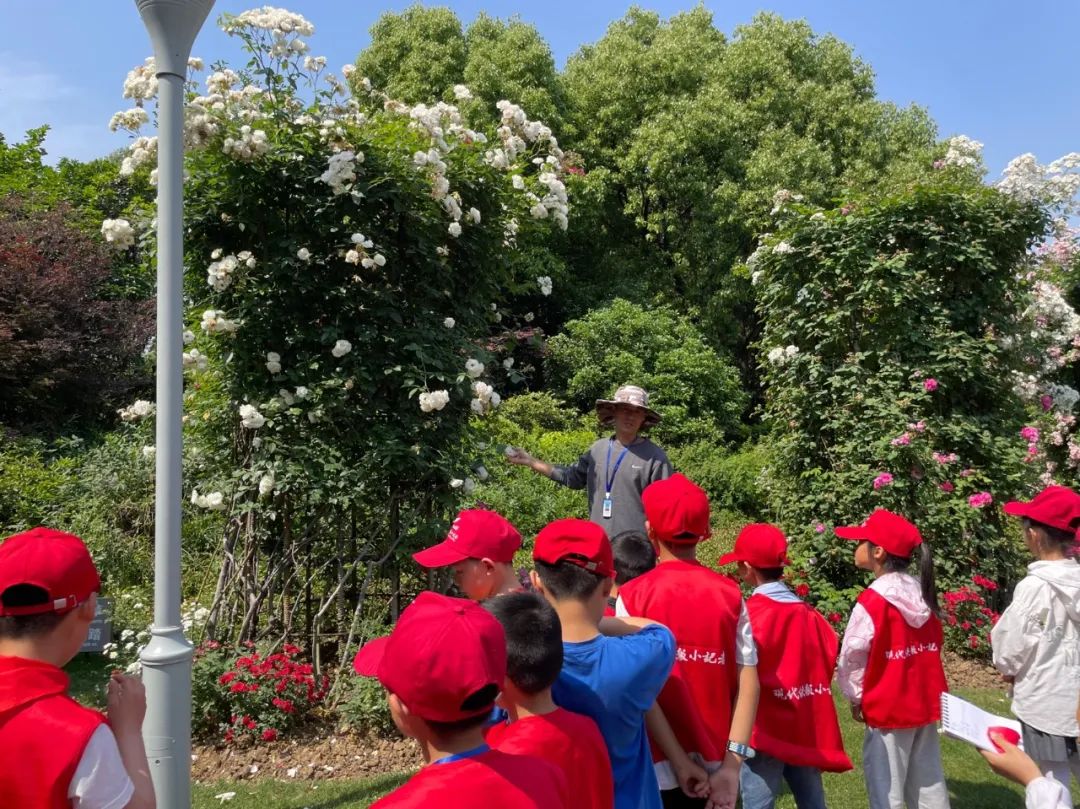 常州市公园管理中心工作人员董亮老师带领小记者们游园,介绍沿途的月季品种、历史与故事。