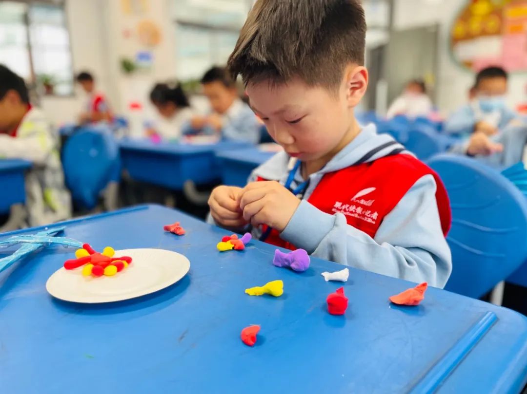 大家拿到材料后,揉搓、按压、粘合、设计、布局,每一个步骤都是自由与想象的结合,是动脑和动手的结合,是指尖的一场舞会,是头脑的极速风暴。制作过程中,小记者们互相交流,整个教室充满着轻松愉悦的氛围。