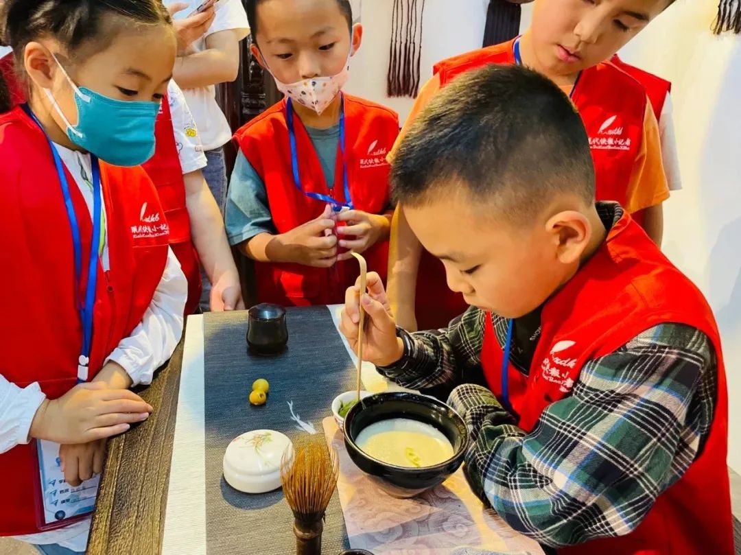 接下来,小记者们体验在茶上写字、绘画。有的画山,有的画太阳,有的写下自己的姓氏……小记者们一一构思,上台体验,其乐融融。本次活动,小记者们认识到中国茶文化的博大精深,领略到宋代点茶文化的魅力,共同度过了一个快乐又有意义的国际茶日。