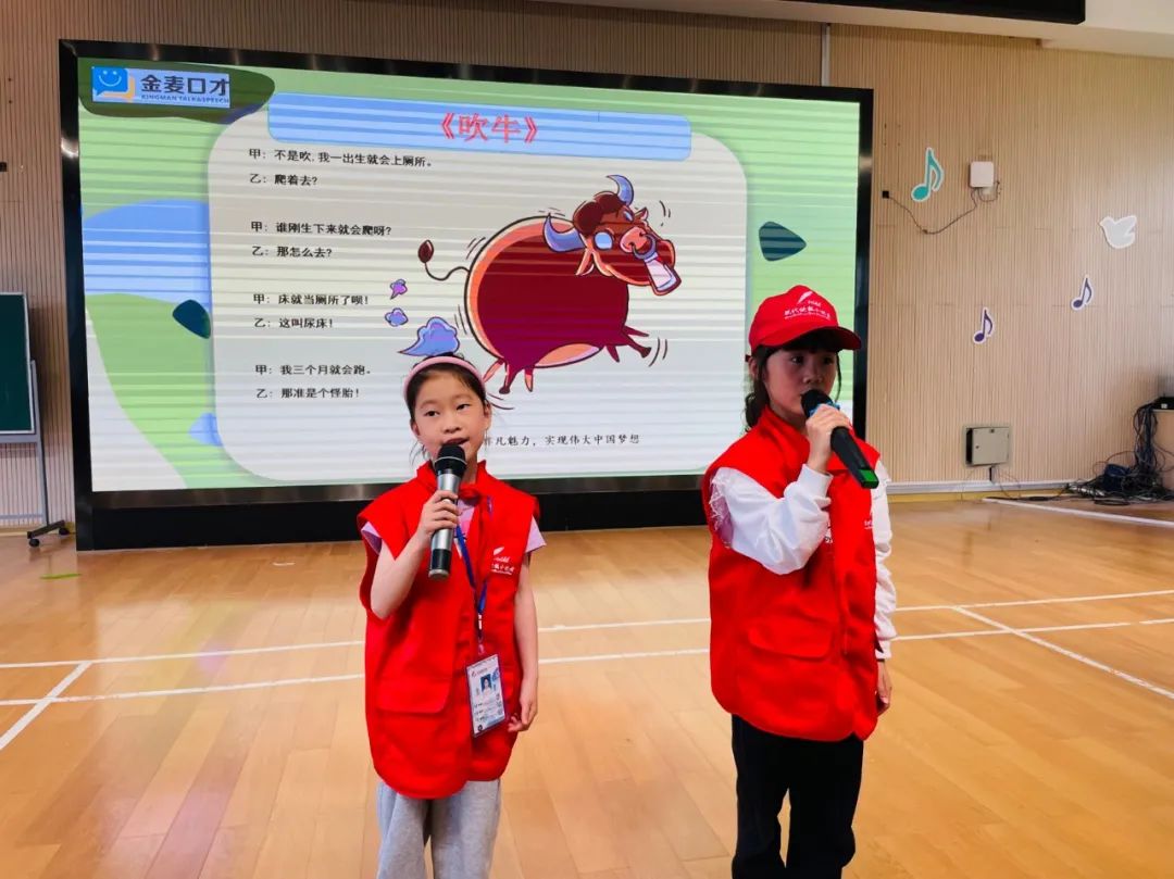 实践出真知,让我们开启相声初体验吧!小美老师现场教学,“学生甲,学生乙,上台鞠躬……”小记者们分为两组,学习相声《吹牛》节选。随后小美老师还邀请小记者上台表演相声《吹牛》,大家纷纷踊跃举手,都想一展风采!