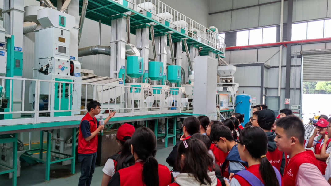 武城村委会宣传委员牟涵杰热情接待了到访的圩塘中学小记者一行,带领师生参观稻米加工厂,为大家讲解稻米从种植到分装的各个环节,并和大家分享这里种植稻米的品种及特点。