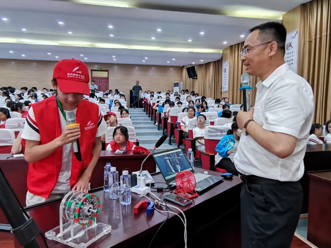 嵇教授结合实验设备用幽默风趣的语言,让晦涩难懂的科学原理在小记者眼前“活”起来了,看着神奇的实验现象,整个报告厅都沸腾起来。