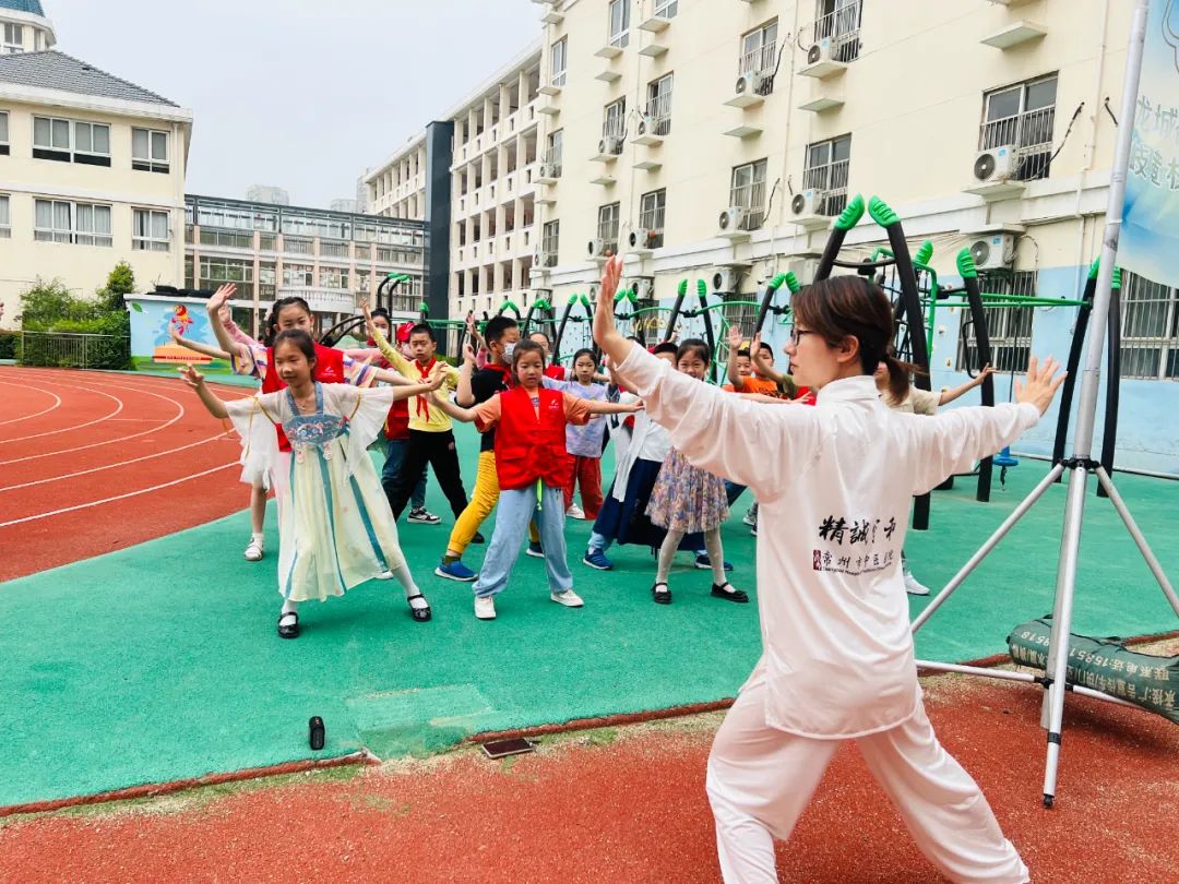 常州市中医医院国家二级社会体育指导员夏丽君带领小记者们一起练习中医养生功法“八段锦”。开步、上托、吸气、下落、呼气……大家一招一式跟着练习,一个个动作,一次次呼吸,焕发出传统功法新的活力。