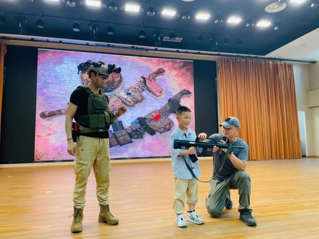 曹教官和张教官通过实物装备的展示与互动,让小记者们对单兵装备有了全新的认识与理解,现场气氛十分热烈。
