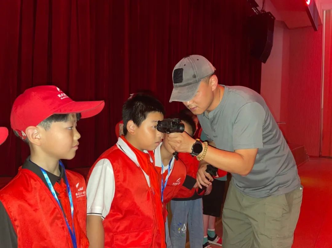 活动最后,现场灯光关闭,教官们带领小记者沉浸式体验夜视仪。