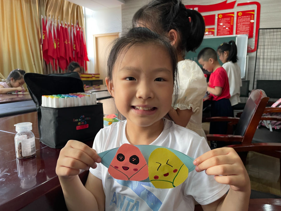 “我们用这两根长条纸片,开端相互重叠......”在赵老师的引导下,小记者们做好了弹弹乐最重要的“弹簧”部分。接着小记者们用彩笔绘出五彩缤纷的小粽子。