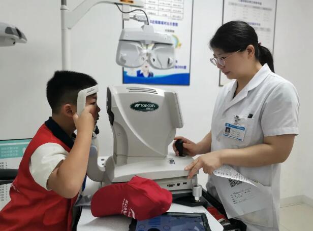 通过专业设备检查视力,小记者们对自己的眼睛有了更进一步的了解。
