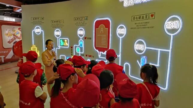 在血液科普教育基地,除了传统的图文、视频的展示,还能通过模拟操演、互动问答等手段,让小记者们在寓教于乐中学习相关知识。