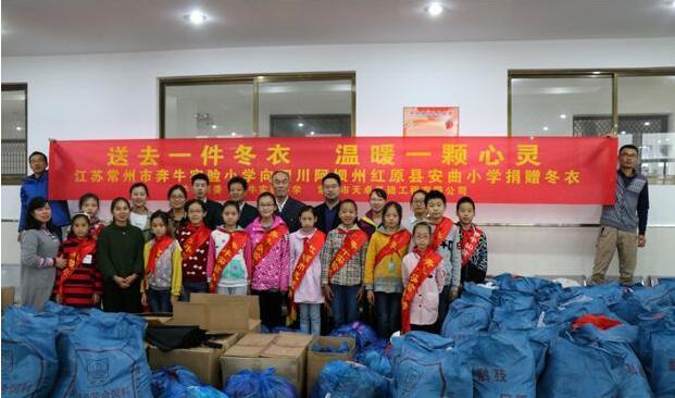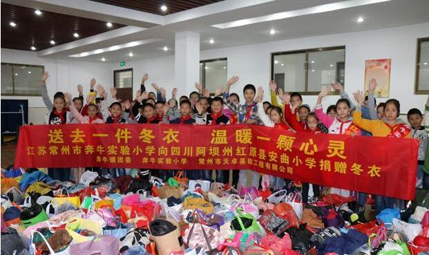 常州市天卓基础工程有限公司的爱心企业家,国庆期间到四川省阿坝州红原县去旅游,看到了红原县安曲小学的孩子衣着单薄,小脸一个个冻得铁紫。红原县为大陆性高原寒温带季风气候,年平均气温1.4℃,极端最低气温-36℃。这位企业家想用自己的绵薄之力帮助这些藏族孩子,便向奔牛镇团委发来了一条救助短信。奔牛镇团委何悦书记在核实信息后向奔牛实小团支部发出了“送去一件冬衣,温暖一颗心灵”的倡议。
