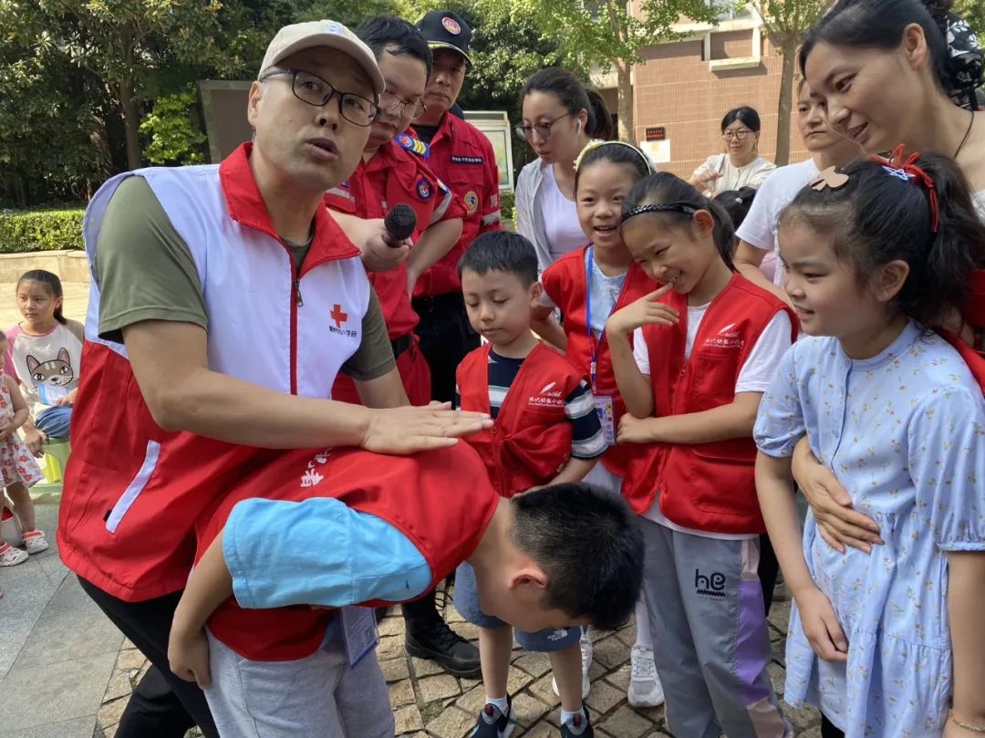 在专业老师的讲解下,小记者们对急救方法的使用有了一定的了解,随后小记者上前进行体验,老师在一旁耐心指导,小记者们认真学习。