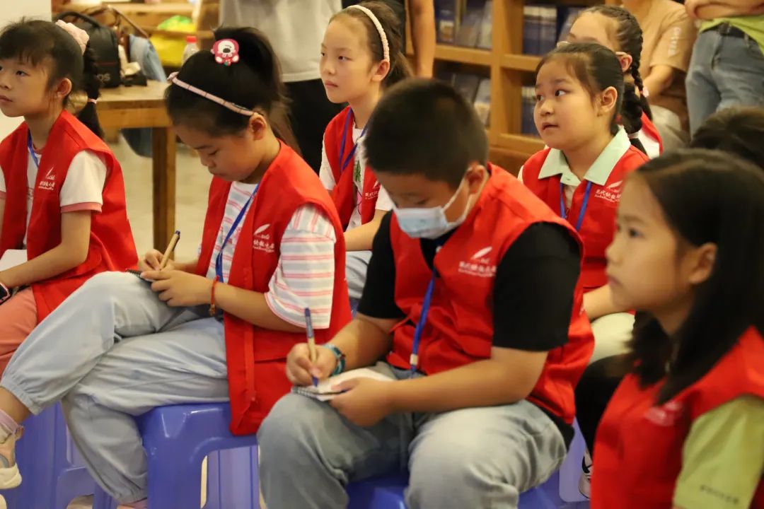 钱老师通过引用中国古代神话引申到中国航空航天,小记者们聚精会神地听讲。