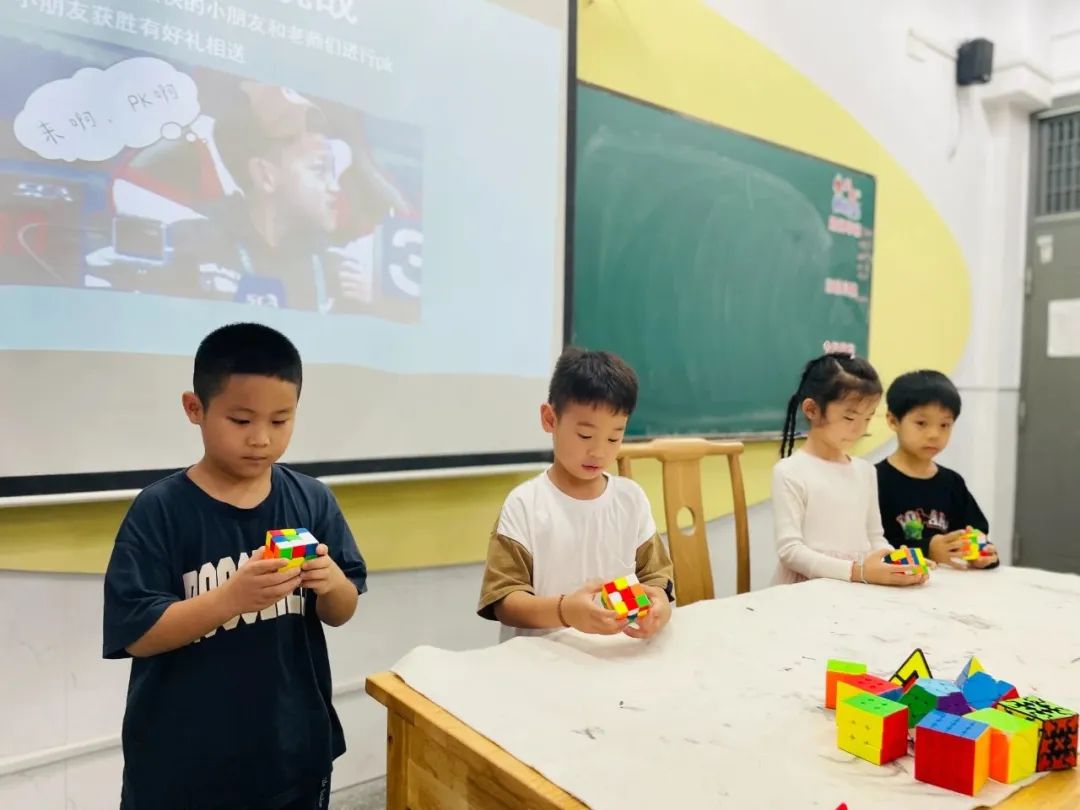 枪老师为大家讲解魔方的发展史,结合实体的正阶异型魔方,让小记者们了解到了许多关于各类魔方的特征以及和魔方有关的“世界之最”。