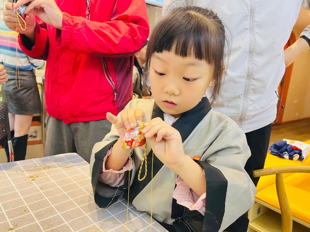 当我们学会辨药、称药之后,就可以制作香囊了,将艾草等药材按量塞入囊中,铺平、压实,再缝合袋口之后,一个漂亮的香囊便诞生啦!
