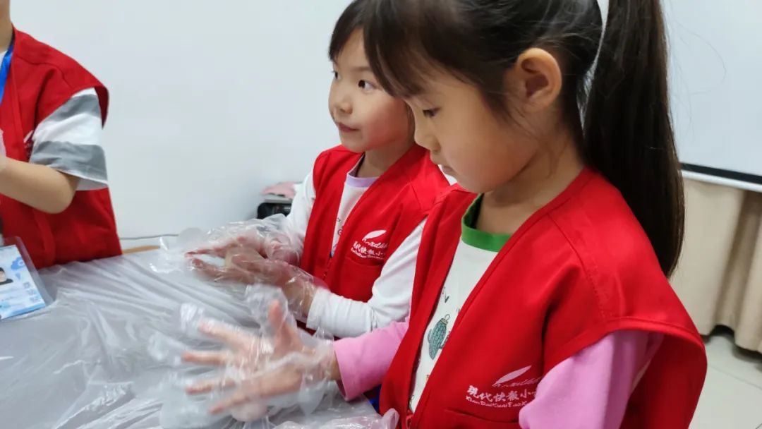 小记者用手轻轻搓成球状,然后用手将面团压成薄片。这个过程需要小心而细致,每个小记者都尽力保持均匀的厚度和完美的形状。