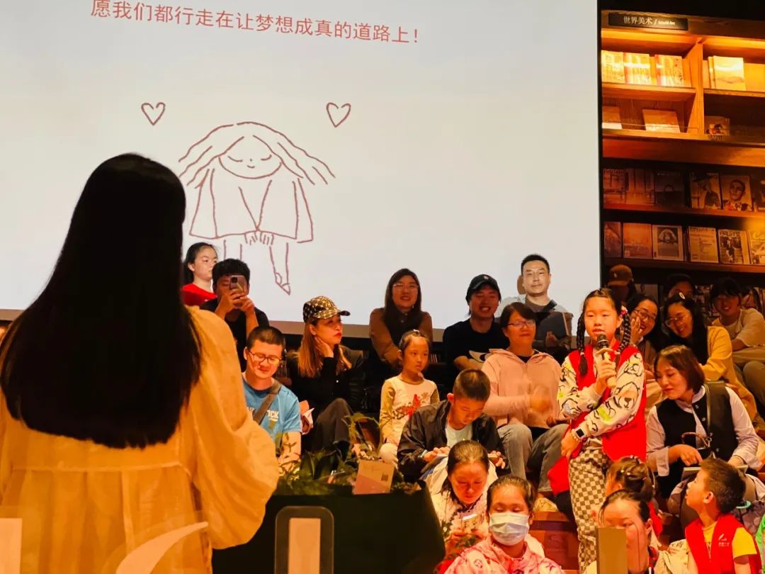 在新书分享会上,叶老师分享创作《千里江山图》的心路历程。她以名画《千里江山图》背后传奇故事为核心,带领小读者们一起了解少年王希孟的成长之路。