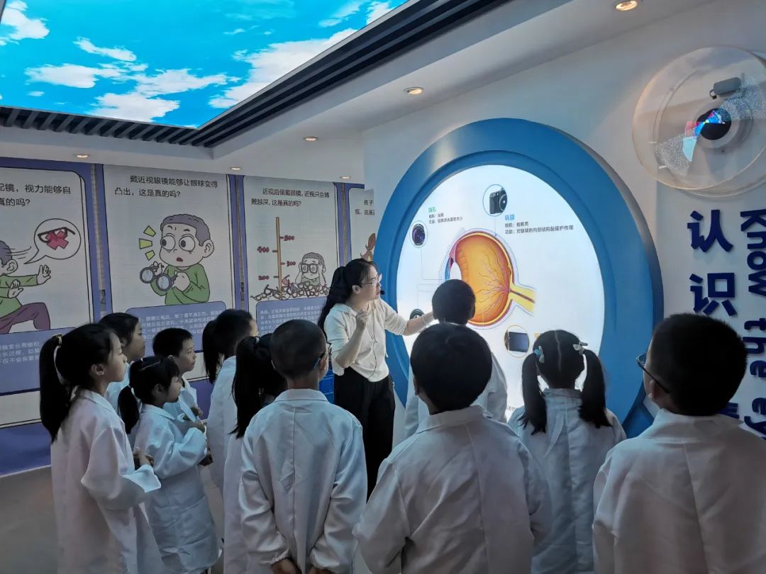 张老师带领小记者们探索眼睛的奥秘,在讲解过程中,老师以通俗易懂语言介绍了我们眼睛的结构,同时也向小记者们解释了近视与假性近视的区别。