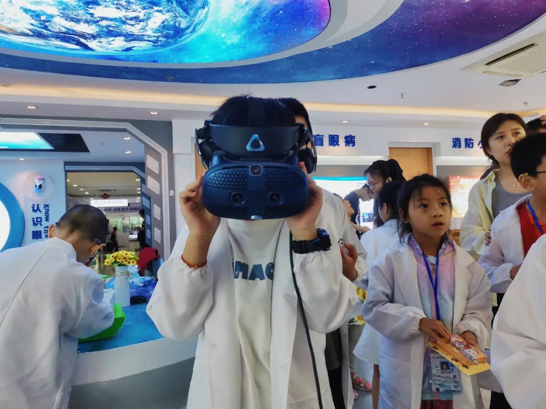 VR体验环节,小记者们及家长分别对患有五种不同的眼病症状进行了体验。