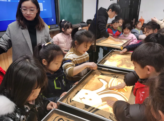 1月11日下午,现代快报(常州)小记者工作室邀请常州颗粒艺术文化推广研究会康老师走进圩塘中心小学,为小记者们开展了一场奇妙有趣的沙画体验活动,让小记者们了解颗粒艺术、体验沙画技巧,以沙作画,勾勒童年。