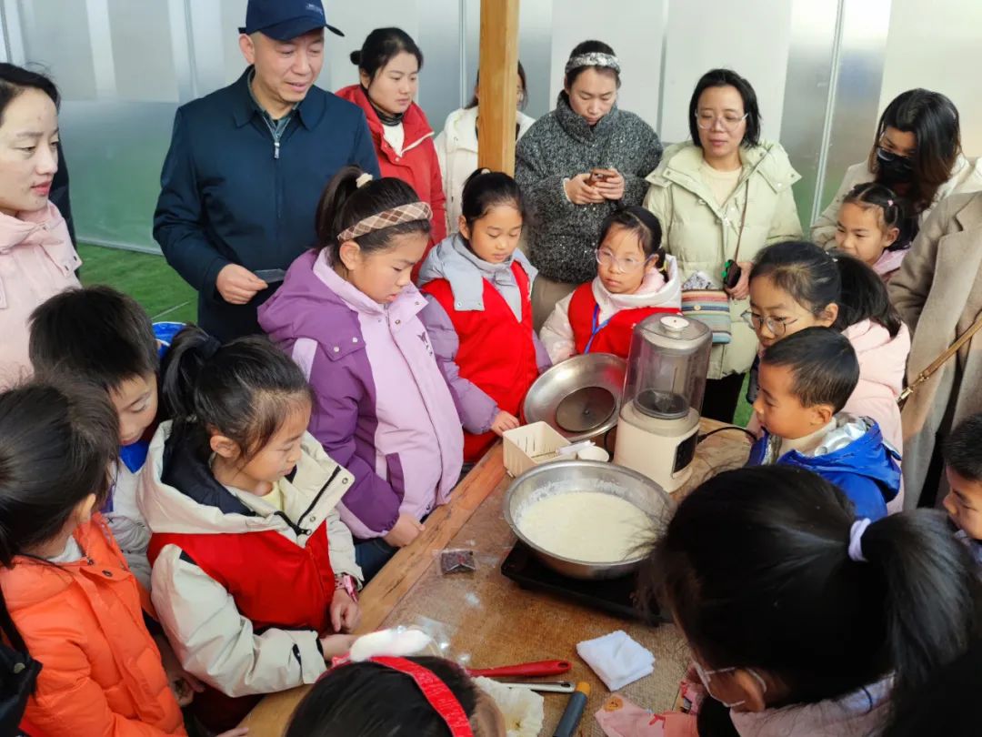 活动中,沈老师详细介绍了豆腐的历史、工艺及种类,让小记者们对豆腐文化有了初步了解。随后,小记者们学习了大豆及豆腐制作的各个环节,包括挑选大豆、浸泡、磨浆、煮浆、加入凝固剂并静待成型。这一系列看似简单的步骤,实则蕴含着深厚的传统工艺智慧。