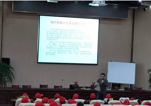 12月10日,虽然是星期六,新桥实验小学的快报小记者们并没有在家休息。下午2点,他们早早来到了学校的阶梯教室等候,原来今天《现代快报·小记者》栏目编辑王卫宇给各位到场的小记者带来了一场有趣的培训活动,他以一个个快报小记者活动作为例子,为大家讲解了什么是小记者,参加快报小记者能得到怎样的锻炼与收获,应该如何参加活动并遵守哪些规则。此外,王老师还和大家聊了聊作为在校学生身边都有哪些新闻可以采写和投稿,喜欢摄影的小记者应该注意哪些摄影小技巧。接着王老师与小记者们展开现场互动,小记者们积极参与,表现优秀的还得到了一些小礼品。活动最后,在《现代快报·小记者》栏目刊登过文章的小记者还被颁发了荣誉证书。短短1小时的培训活动,让现场的小记者们认识到——小记者,大学问!