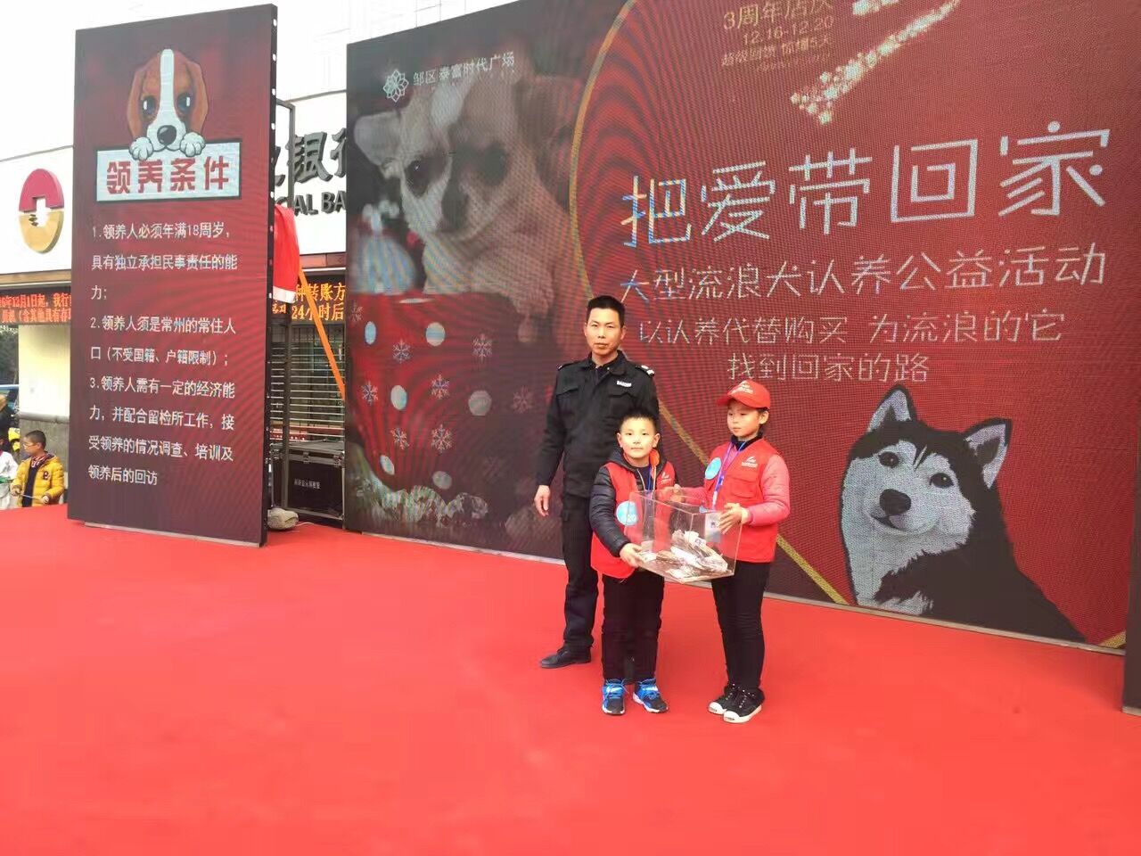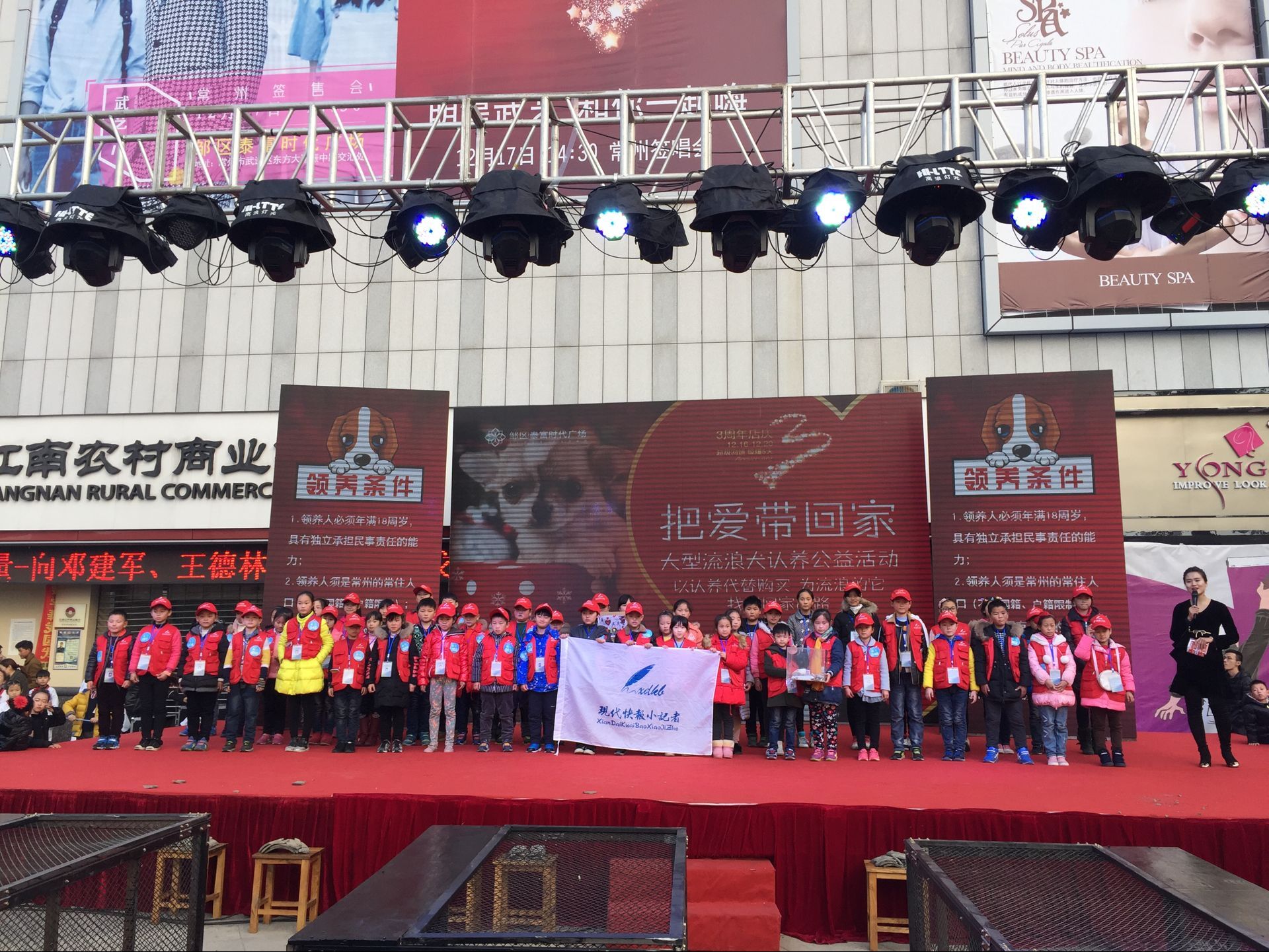 12月18日,现代快报小记者与邹区泰富广场共同举办了“把爱带回家——大型流浪犬认养公益活动”,近百名快报小记者来到活动现场,拿出自己家中一些闲置物品,在自己的义卖区进行售卖,最后快报小记者义卖所得的善款全部捐献给常州犬只留检所,在这个寒冷的冬天,为狗狗添置些必要的物品,给狗狗一个温暖的家。