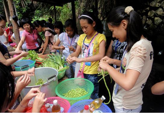 ▲从洗菜到烧烤,没有外力帮助,给孩子自己动手的机会,让他们在自给自足中获得成就感与满足感。