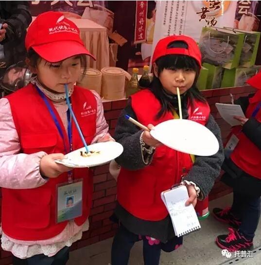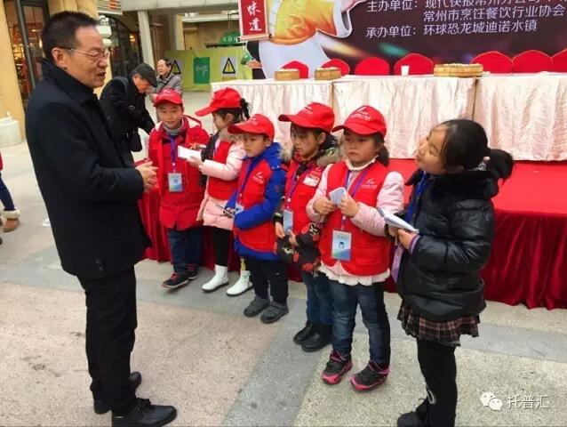 1月14、15日,由现代快报、常州民俗学会、常州市烹饪餐饮行业协会等单位共同举办的《2016第二届中国•常州包子大比拼》在迪诺水镇精彩继续,活动现场汇集了几十家我市及外地赶来的知名餐饮企业。此次活动自然少不了我们快报小记者啦,瞧,他们穿着红色的帽子与马甲,拿着笔本在热闹的人群中往来穿梭,真是现场最亮丽的一道风景。