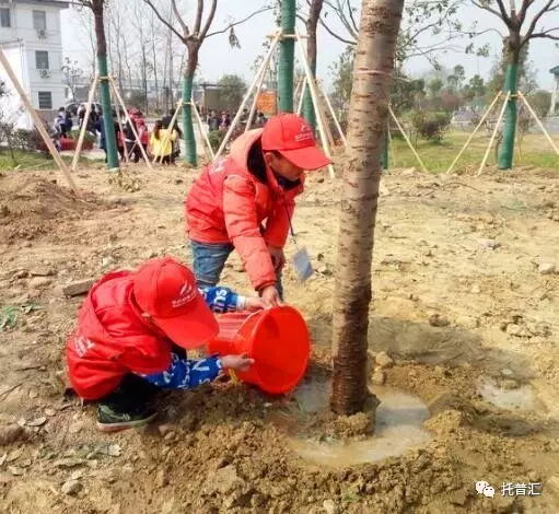 好不容易把树种好了,接下来就是浇灌了,期待这些树苗能茁壮成长