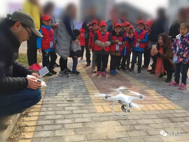 发现现场航拍的无人机,机会难得,现场采访驾驶员