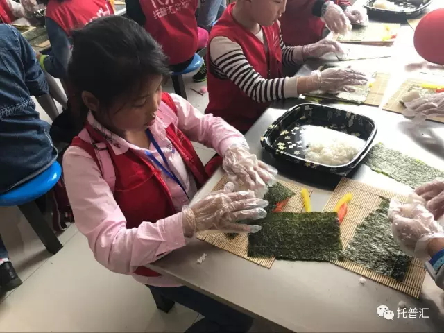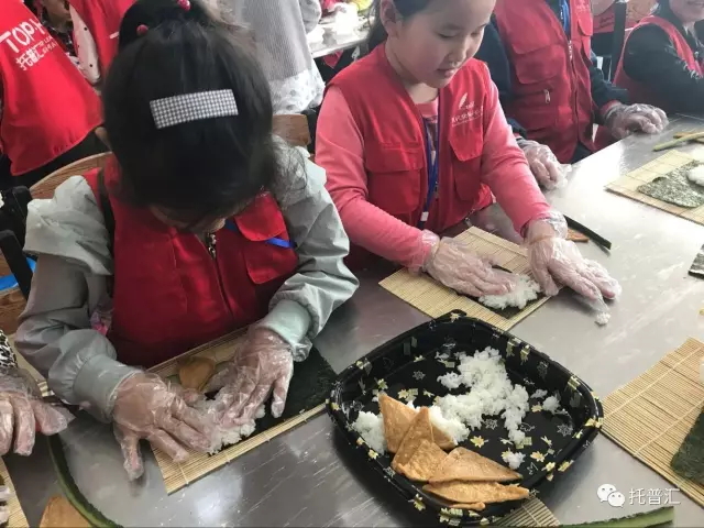 午饭时间,小记者们除了享用自己亲手制作的寿司,老师们还发了不同品种的寿司给大家品尝