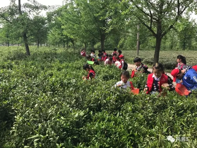 陶泥制作完毕后,小记者们化身茶农,徜徉在一片欢乐的茶海中,投入到采茶的劳作中