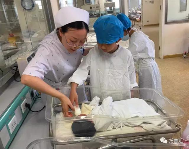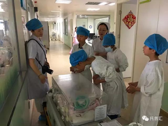 前往新生儿病房,要穿戴好隔离服与帽子