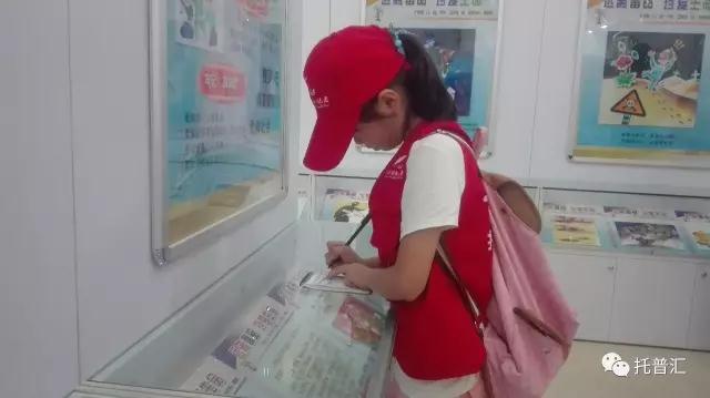 小记者们观看了展板资料和宣传视频,认真仔细地做着笔记。