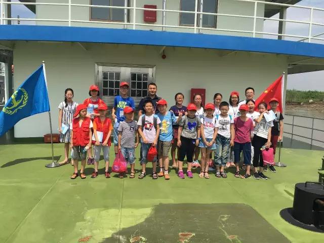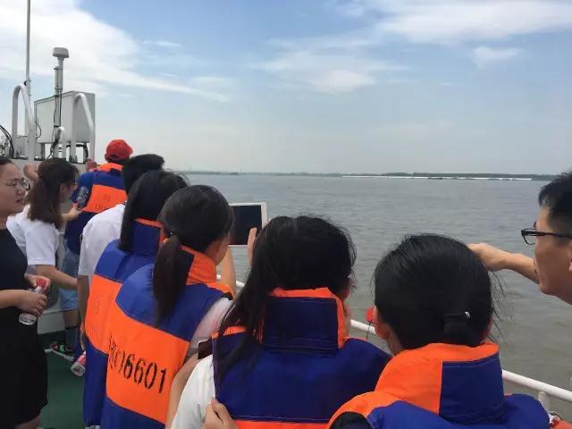 走出船舱,我们对江上的一切都感到好奇,陪同我们的海事局叔叔阿姨不厌其烦地为我们讲解