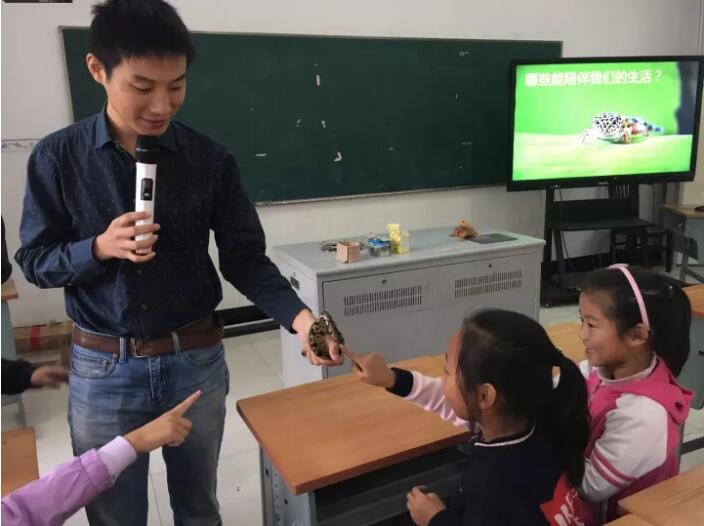 张老师把这个小家伙拿下讲台,和大家亲密接触。