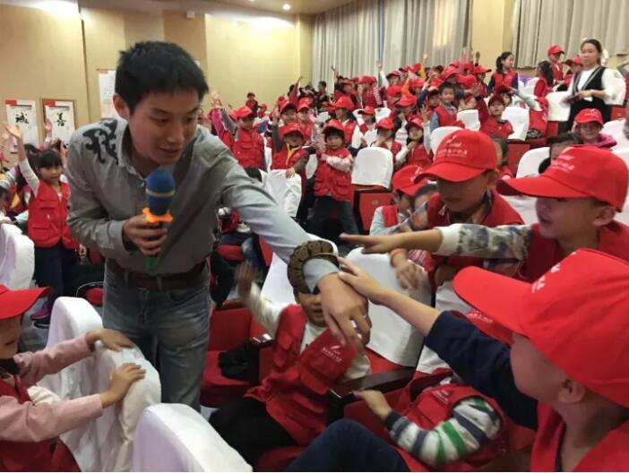 小记者们纷纷走向台前,近距离观察触摸。相信通过本次讲座,小记者们对于爬行动物有了更多的了解,留下了难忘的经历。