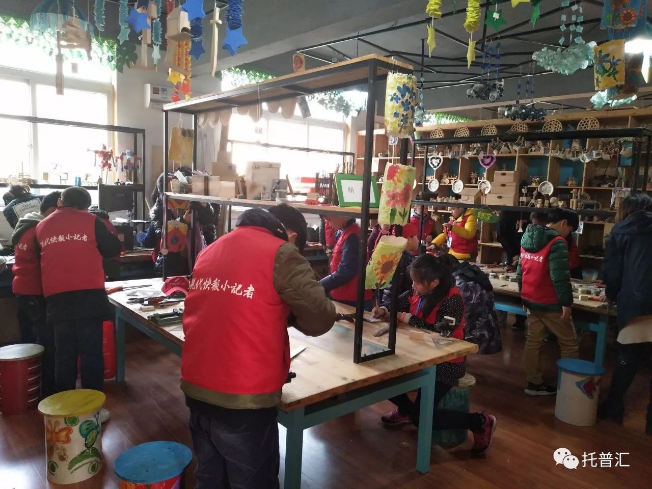 12月24日下午,在现代快报小记者工作室的组织下,湖塘桥第二实验小学的部分快报小记者们来到了灿计画美学馆,小记者们学习和体验了创意设计衍纸和木玩。