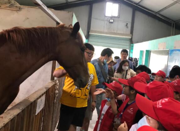 你知道怎么跟马接触吗?嘻嘻,不知道吧!你不要怕它,伸出手给它闻闻,然后慢慢地到摸它左侧或右侧的脖子,它会非常开心的,因为马最喜欢人摸它的脖子了。但马儿们有一个部位是比较敏感的,大家不要到马屁股后面,要是你拍马的屁股,它们会受到惊吓,激动之下会踢你的。