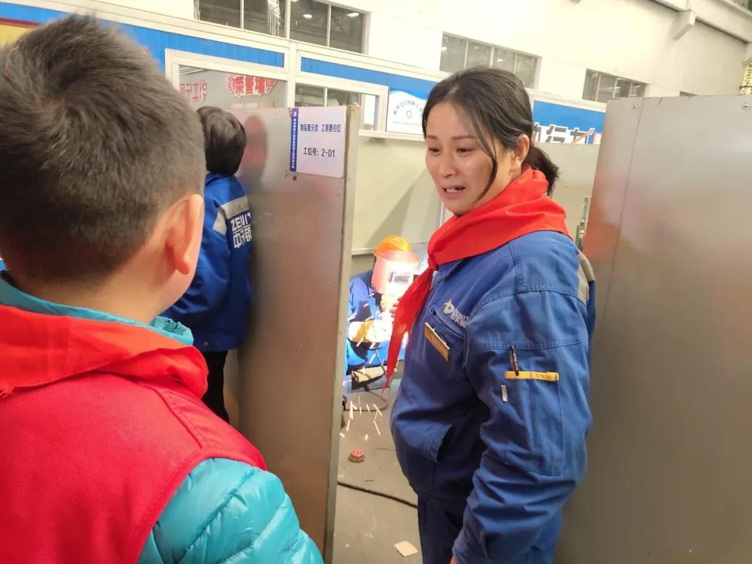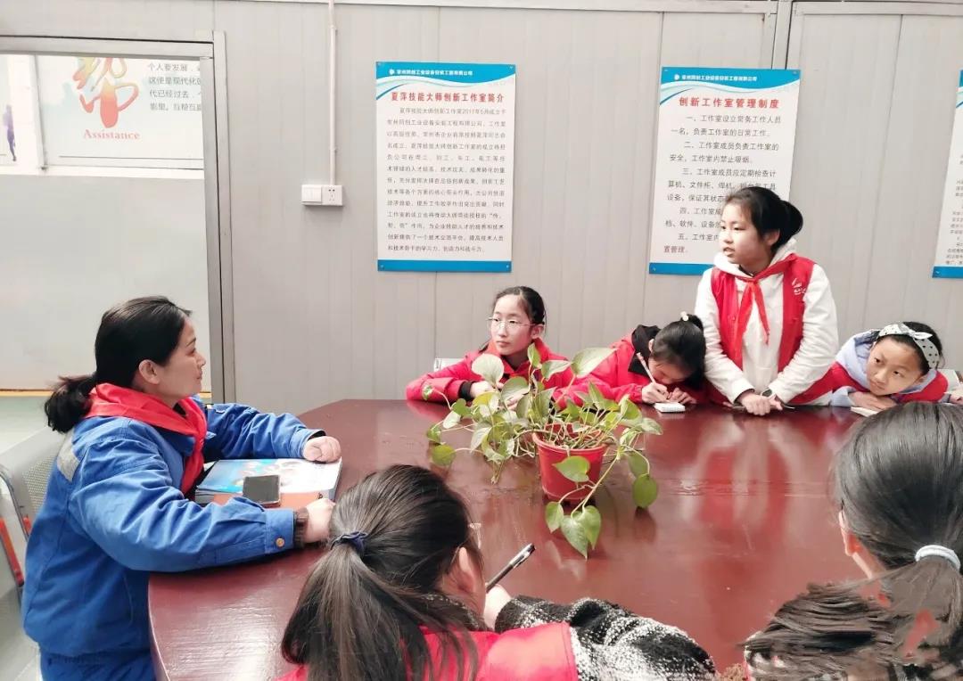 2月18日下午,怀着对劳模的由衷敬意,队旗引路,横林实验小学部分快报小记者来到了中天钢铁集团同创公司“夏萍技能大师工作室”,走近一位平凡的劳动者,听她讲述用弧光点亮的电焊人生。