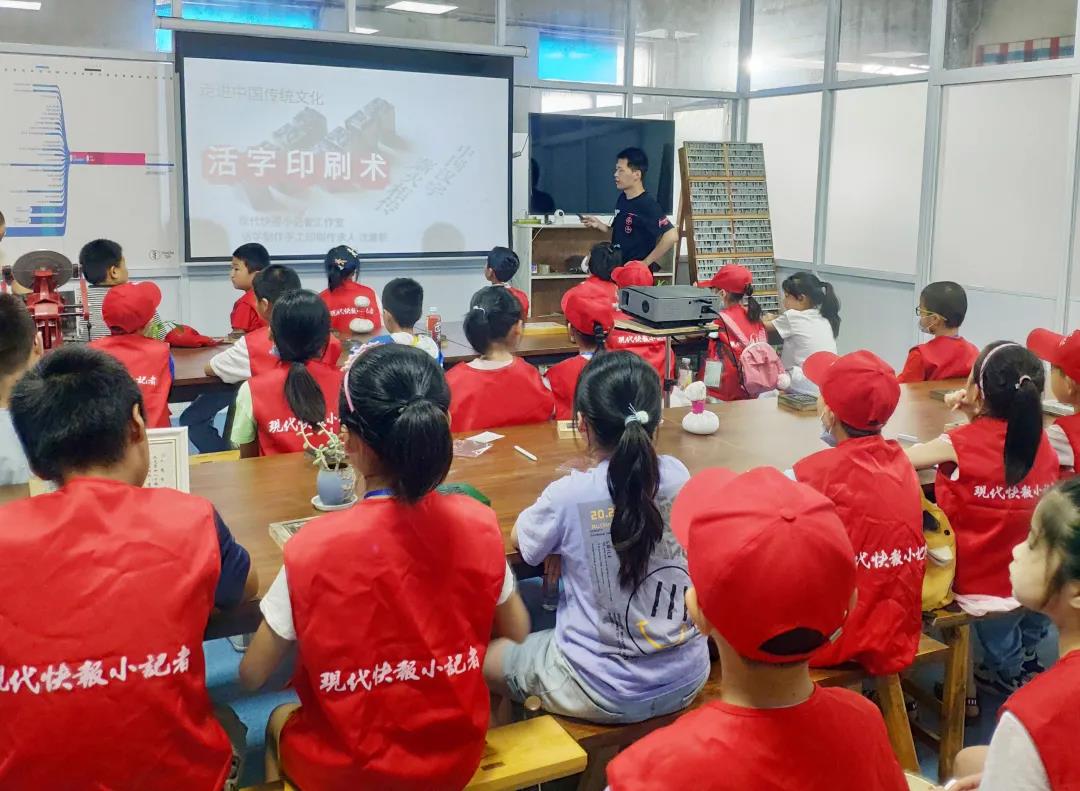 7月25日下午,来自采菱小学、湖塘桥实验小学、怀德教育集团香江华廷校区等学校的部分快报小记者走进建红字模厂,跟随活字制作手工印刷传承人沈建新老师一起领略“铅与火”的不朽文化。