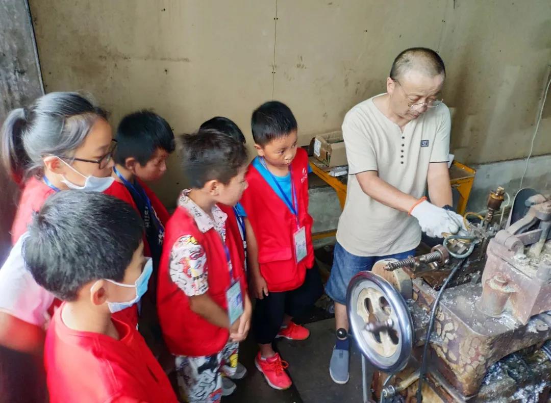 通过视频演示以及图文讲解,小记者们了解了汉字的发展历史、雕版印刷到活字印刷的演化过程以及铸字的工艺流程。在参观铸造铅活字机器和铜字模的同时,小记者们争相采访沈老师,感受到他坚守铜模活字30余年的工匠精神和不渝的初心。